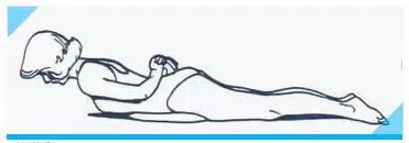 上半身如图示位置,保持髋关节紧贴地面,同时保持下腰部及臀部放松