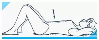 将足置于高位,手臂放于颈后或胸前,整个骨盆放平,抬高头部和肩关节